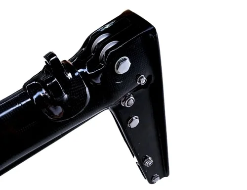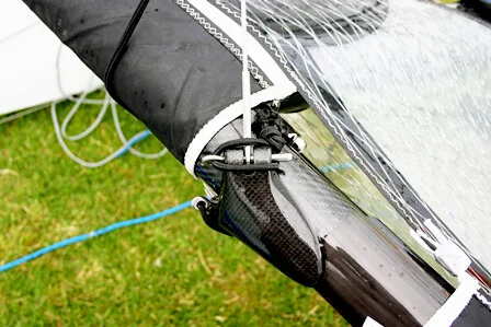 Many yachts require a set of lower stays near the gooseneck to control or restrict lower mast bend. On yachts that use T-plates we will often fit an internal sleeve or reinforce the outside of the mast to compensate for the hole placed in the mast at a high load location. On the 16ft and 18ft Skiffs and classes like the Merlin Rocket and Shaw 7m we fit a custom made D1 (lowers) carbon fitting as this is glued to the mast and requires no holes in the mast, being on the front of the mast also gives clearance to the lowers stays.