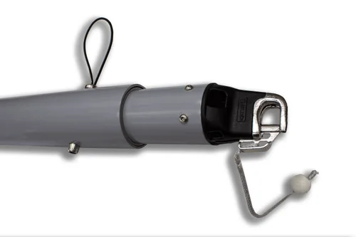 C-Tech build telescopic spinnaker poles that can be used at a range of intermediate lengths to pole out a number of different jibs and genoas. This pole can be pinned to a 4m length for use as a kite pole, right out to 6.4m length as a light air pole for the Genoa.