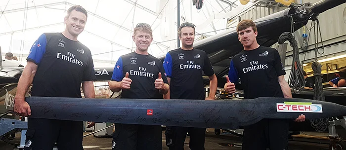 C-Tech has been involved in every America's cup event since then and has expanded from supplying battens to all sorts of other composite components including: foils, grinding pedestools, tubes, compression struts, hydraulic accumulators, fairings, wing control panels, sail corners, daggerboard cases, structural pods, bike frames, control arms and also helping with CNC services and autoclave curing.