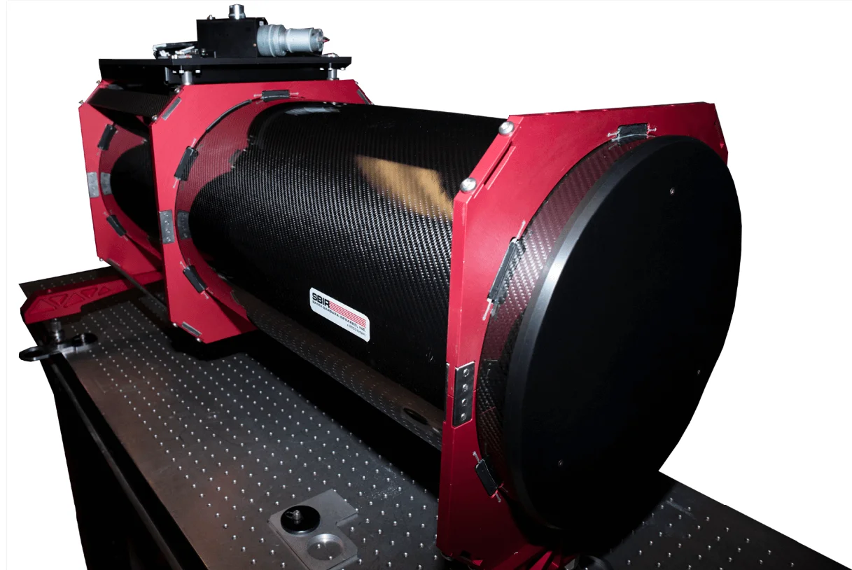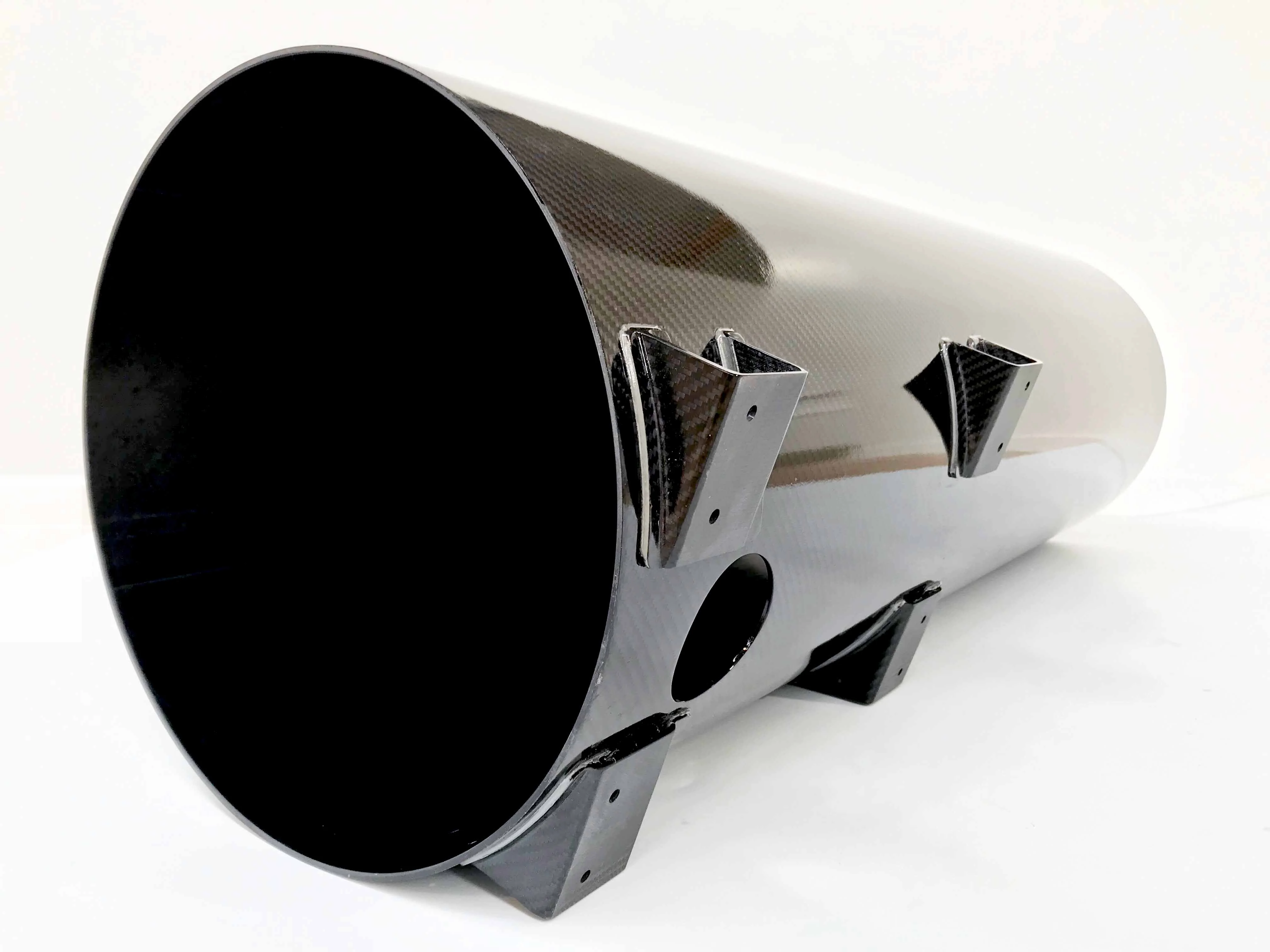 A laser collimator is used to align the optics of a reflecting telescope. The collimator changes the diverging light or other radiation from a point source into a parallel beam. Carbon fibre is often used as the main body for its extremely low coefficient of thermal expansion (CTE) to maintain accuracy. C-Tech built the 300mm ID tube and mounting points as well as machining finishing cut-outs on the 5-axis CNC machine.