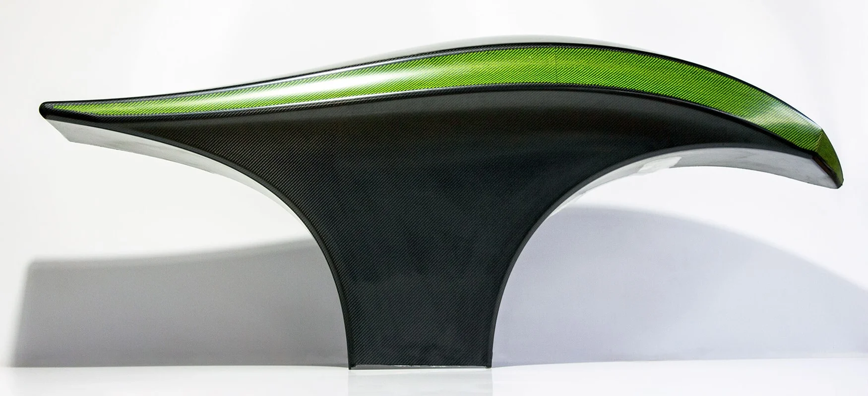 C-Tech chose to build the part using a female moulded autoclave process to achieve the best possible laminate consolidation and surface finish. C-Tech was able to manufacture high temperature carbon moulds capable of being autoclaved completely in-house using our 5-axis CNC machine. We integrated some coloured kevlar fibre to meet the customers aesthetic.